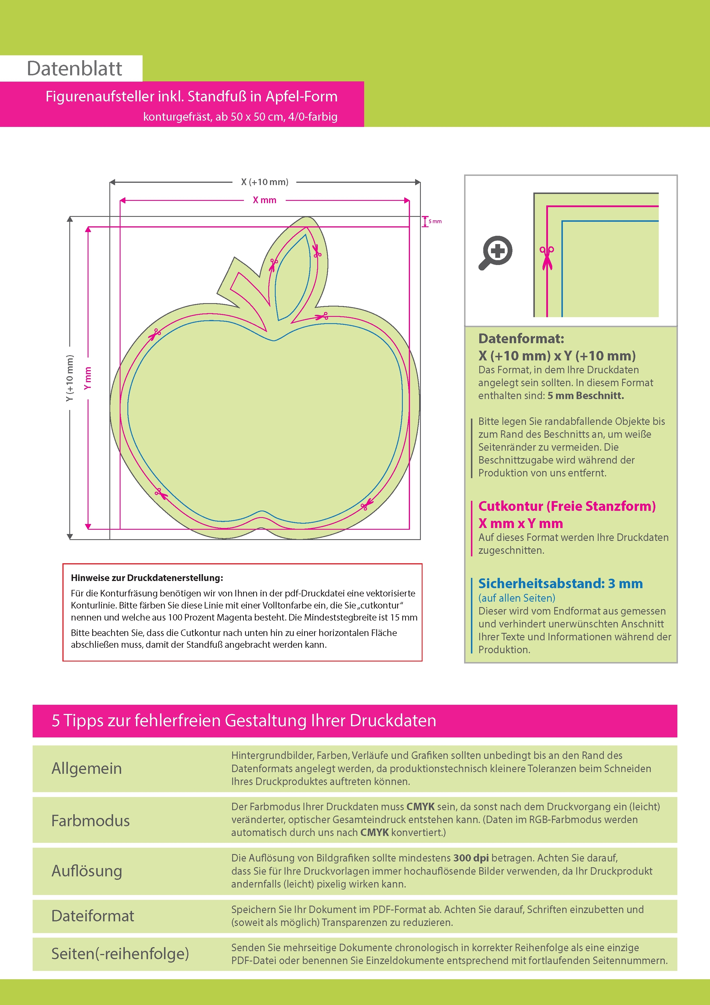 Figurenaufsteller inkl. Standfuß in Apfel-Form konturgefräst, einseitig 4/0-farbig bedruckt