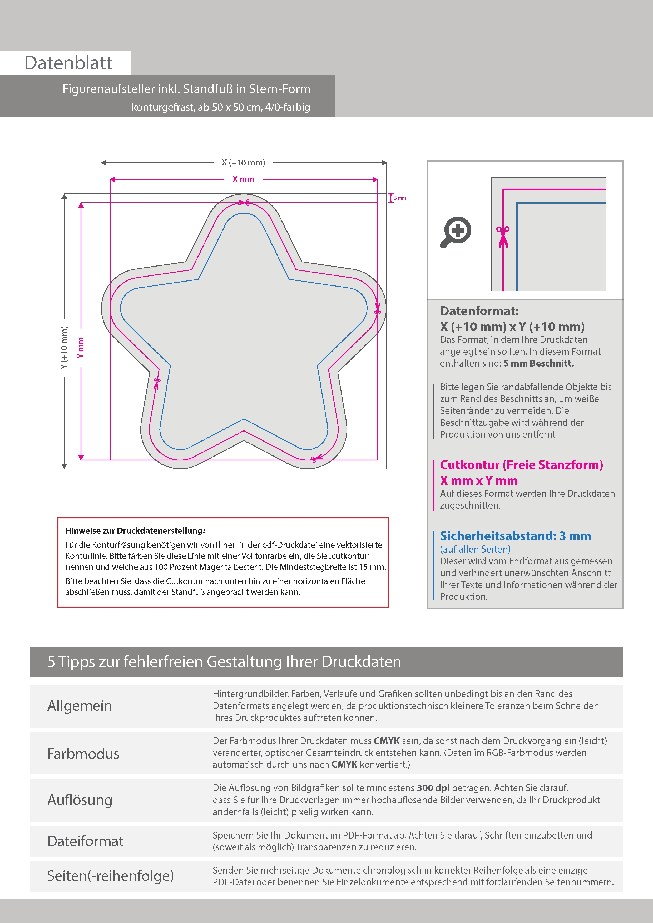 Figurenaufsteller inkl. Standfuß in Stern-Form konturgefräst, einseitig 4/0-farbig bedruckt